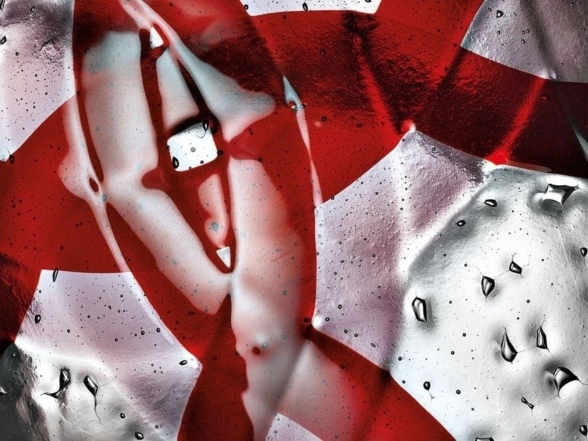 The in-house technical and design office of VéVé Glass, directed by Arch. Massimo Brignoni, constantly confronting with the Client’s designer, studied the “Rondò” solution: a decoration with panels curved according to the radius of the columns, made with a first sheet of crystal glass, a layer of silver leaf to embellish the artifact and eliminate any transparency, a sheet of opaline glass and, superimposed at the end, the sinuous red glass decorations skillfully cut and composed by hand; all fused in the oven to determine a single piece.